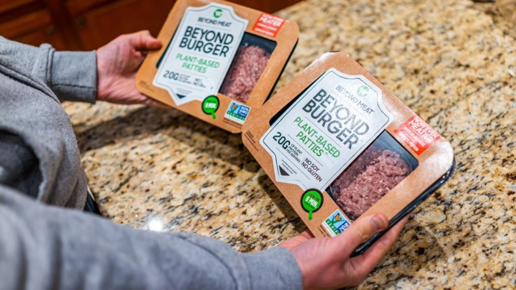Beyond Meat says a two-pack of its burgers require 97% less land use, use 92% less water, and generate 88% less greenhouse gas emissions.